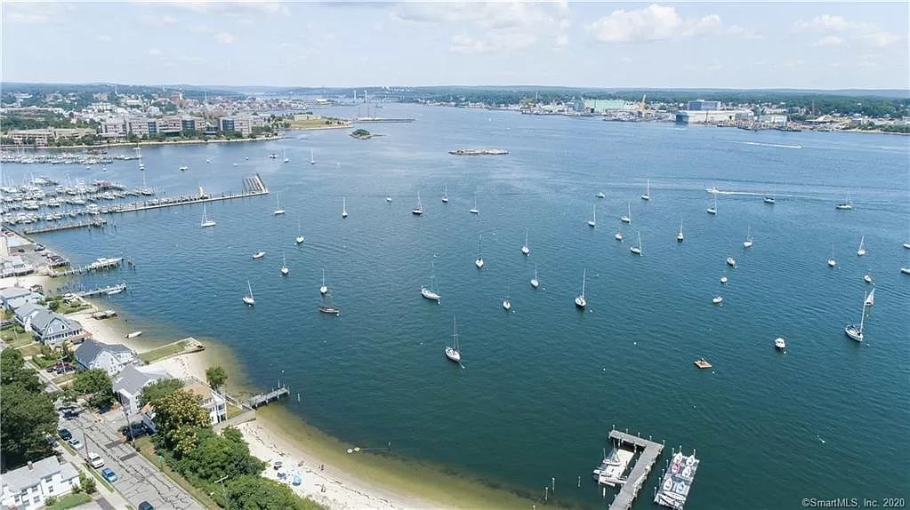 Recent photo of Pequot Ave. Our old house is to the left of the beach and has a light brown roof.