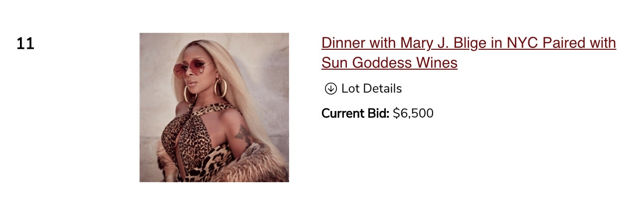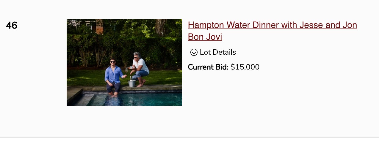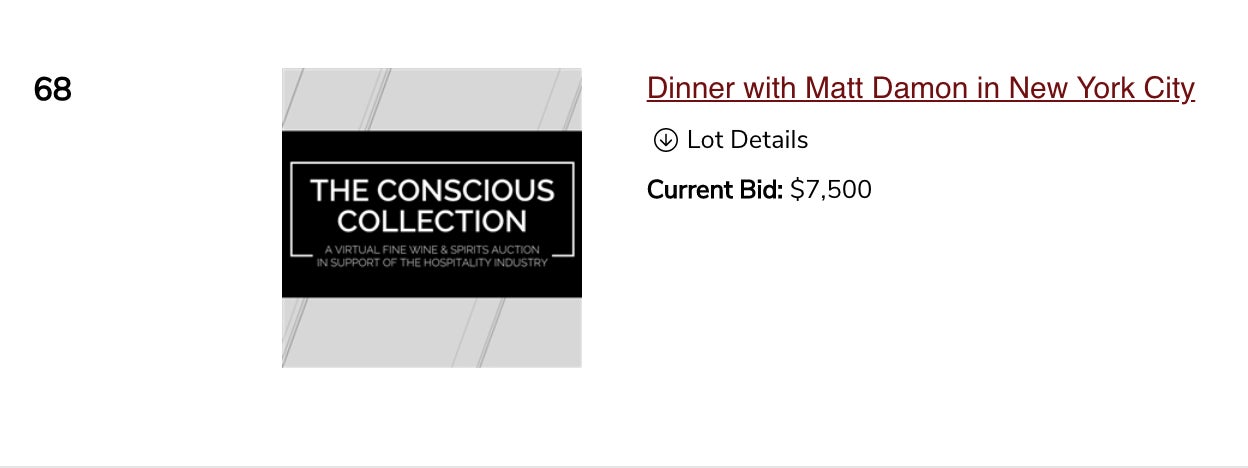 Am I now a bigger celebrity than Bon Jovi, Matt Damon and Mary J. Blige? Not for me to say but the bids would suggest yes. Both dinners are for you and nine guests in New York City.