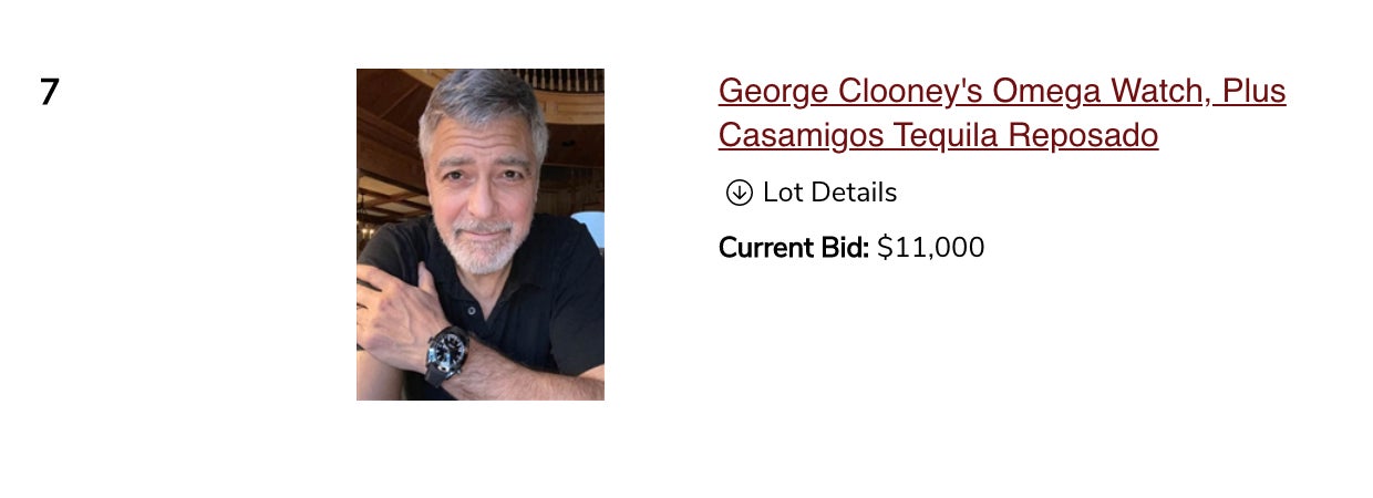 I am not the only person in this auction who was listed as one of the 100 most handsome men of 2018. George Clooney has a lot available as well. You can get an Omega watch from his personal collection and a signed photo of him wearing it. You know any watch worn by George Clooney himself is guaranteed high fashion.