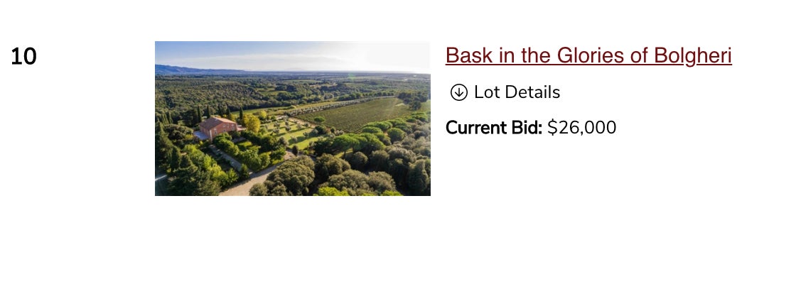 We will have a bunch of incredible lots available for bidding. Meeting me, dinners with celebrities, full blown vacations, rare wines, and a whole lot more. If you want to bid, make sure you sign up early.