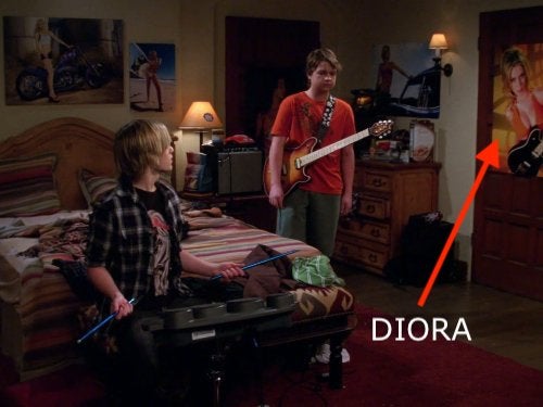 BUT a poster of her wearing short-shorts, an orange tank-top, and holding a black guitar remains hanging in the half-man, Jake Harper's, room.