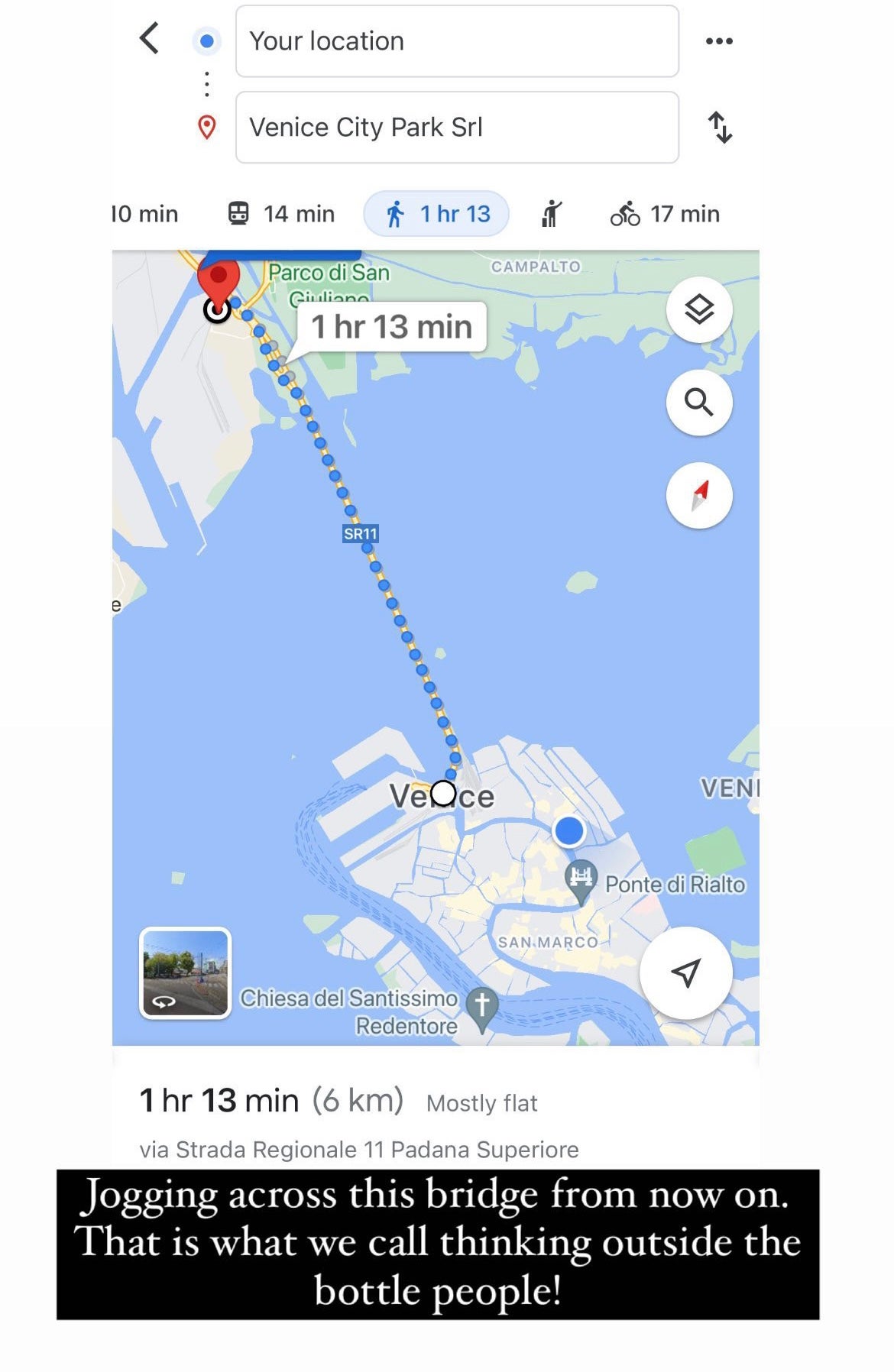- In order to fall asleep easier without using alcohol as a crutch, I've started jogging again. My first jog in Venice was a disaster. The entire city is just bridges and narrow alleyways jam packed with tourists.