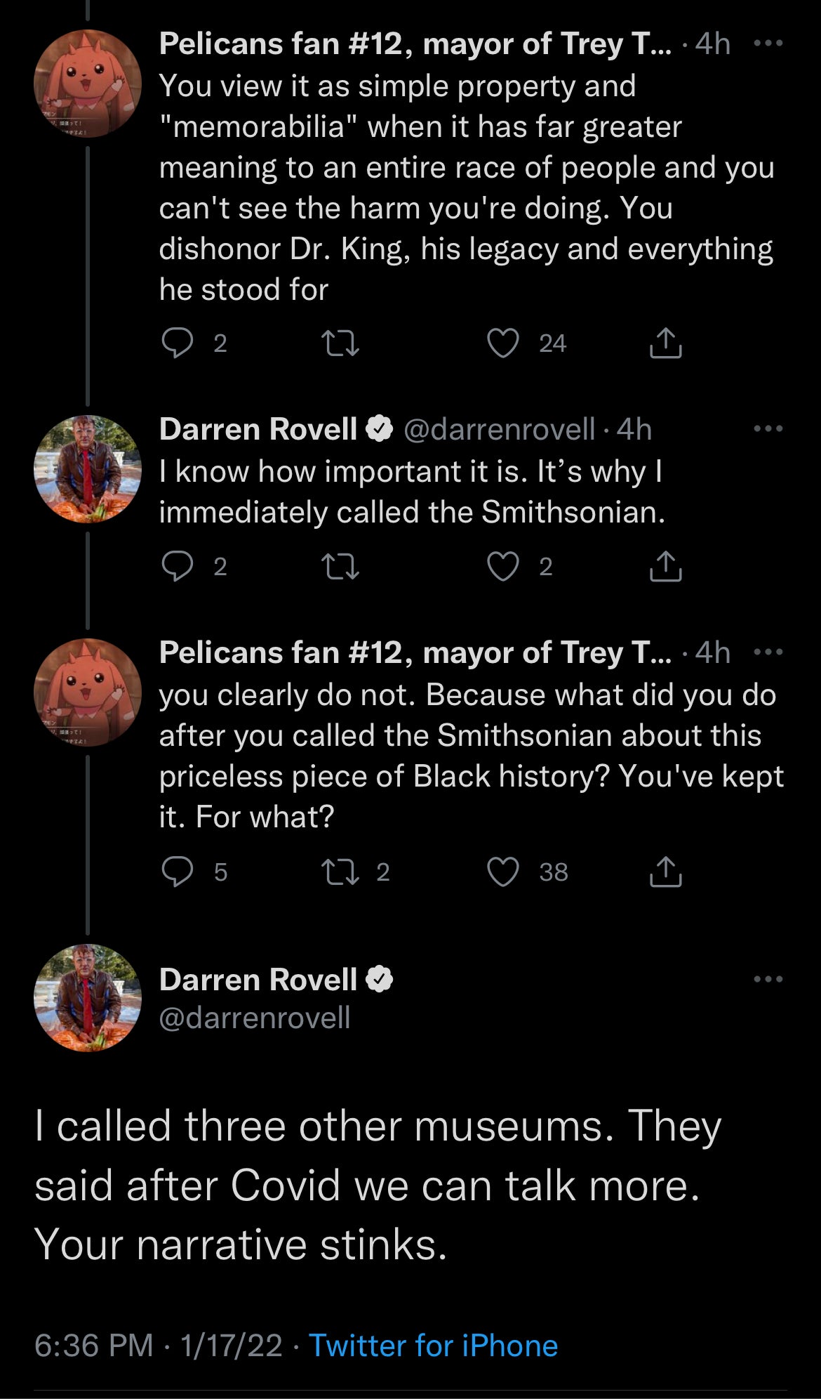Darren Rovell Owns “Over Nine MLK Signed Items” That He Outright Refuses To Donate To The Smithsonian