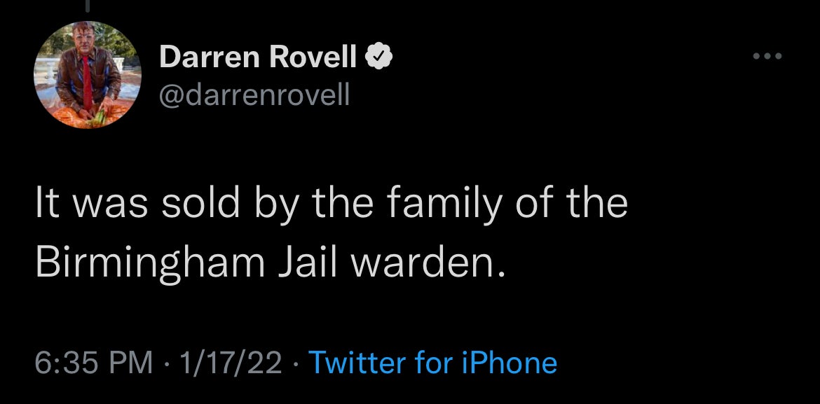 The stunned silence from that Twitter space really tells the whole story. The “I’m SORRY for being white” immediately met with an extremely fed up “Alright” is almost as funny as talking about owning a signed Rosa Parks rookie card. This shit is not about race, please stop yelling at everyone. This is about claiming to be a student and fan of the history while simultaneously refusing to part with such documents because of their monetary value. If he truly cared about the historical importance there would be no hesitancy to send it off to a museum, any museum, so that future generations could get a glimpse at such a key figure in our country’s history. I believe that is what’s counterintuitive here, not folks calling you a dickhead for being a dickhead. I also believe I will not be able to sleep a wink tonight until I know what else he’s got in this British museum of a house he’s built. “See that shovel? That’s the shovel they dug the underground railroad with.”