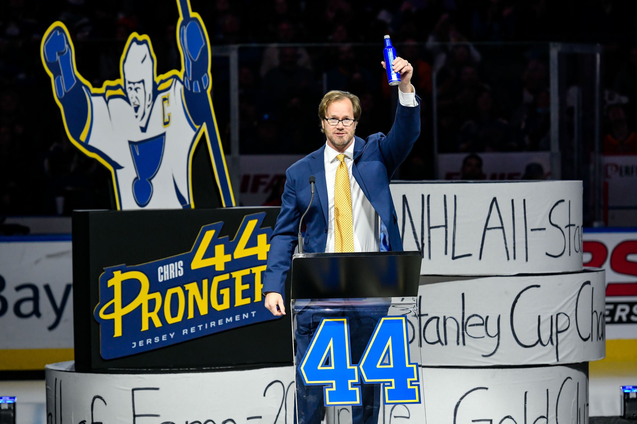 Chris Pronger Crushing A Beer During His Jersey Retirement Ceremony In St. Louis Is Exactly Why He's One Of The All-Time Greats
