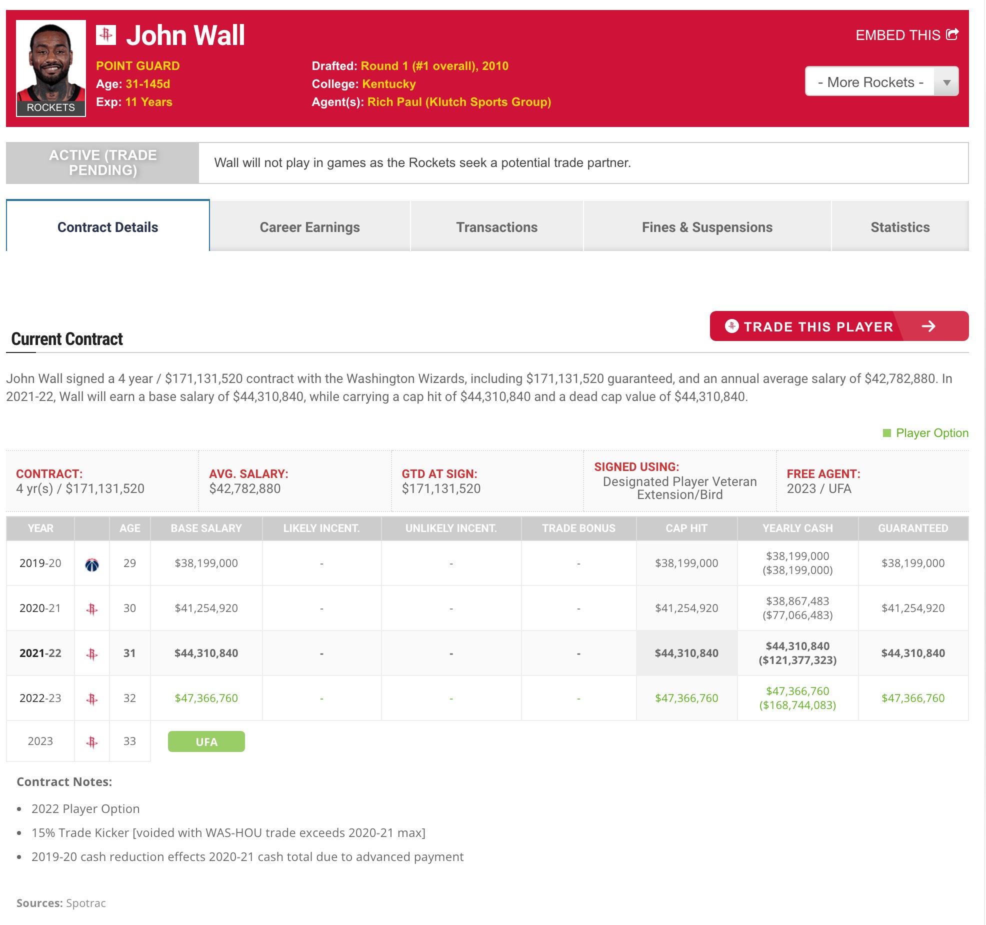 Oh hell yes. This is the type of chaos I'm talking about. We know that there are only a limited amount of teams that would be willing to take on Russ's insane deal. He's owned like 90M over the next two years. So what's the solution? Easy. A Russell Westbrook/John Wall Trade 2.0. It's not like the Rockets are playing Wall or anything. He has the exact same contract situation as Russ