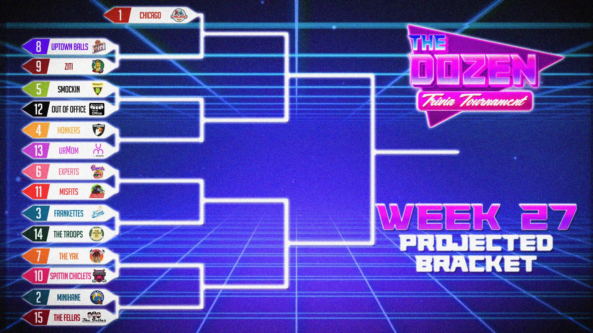 Honestly, find an easy path for any of the Top 4 seeds… you can't! 1-Chicago (5-3-0) is on a roll, but they nearly lost to 8-Uptown Balls, and 9-Ziti is always a tough match for anyone. 4-The Honkers (4-2-1) barely beat 5-Smockin (4-1-0) earlier in the season and lost to 13-urMom (3-4-0) already once. Last year, 3-Frankettes (6-1-0) lost in their first tournament match, and have enough history with 6-The Experts (12-5-0) and the new-look 11-The Misfits (2-4-0). Then of course 2-Team Minihane (6-2-0) also lost their first match of last season's tournament, and 7-The Yak (2-3-0) being anything worse than a four seed is a nightmare for teams in the tournament.