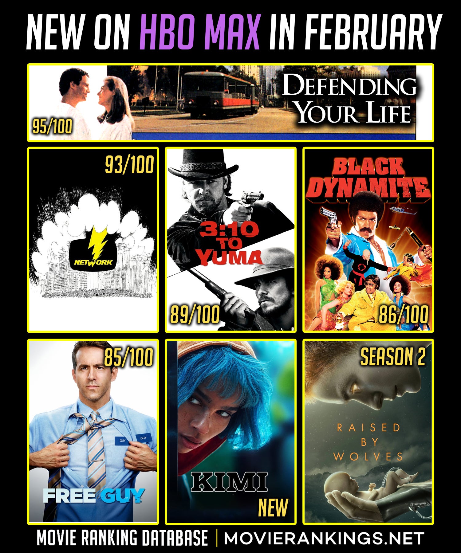 Feb 1st: 3:10 to Yuma, 12 Years a Slave, Airheads, Amistad, Black Dynamite, Chinatown, Chuck, Defending Your Life, Donnie Darko, Kick-Ass 2, Master of Disguise, Network, Nightmare Alley(2021), Rango, Rob Roy, Rules of Engagement, School ties, The Searchers, Sweeney Todd, Uncommon Valor, West Side Story(Original)