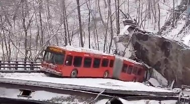 Here's another perspective of the collapse & of how close this bus was to the edge: