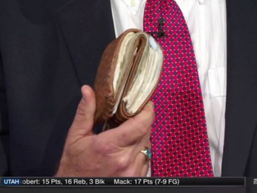His wallet remains the 8th wonder of the world. Full on Constanza wallet. The Wallet that was a joke on a sitcom, that’s Chris Berman’s REAL wallet. Receipts from a decade ago, a billion business cards and about 200 hundred dollar bills. It’s an organizer, a memory, an old friend. Long live the King.