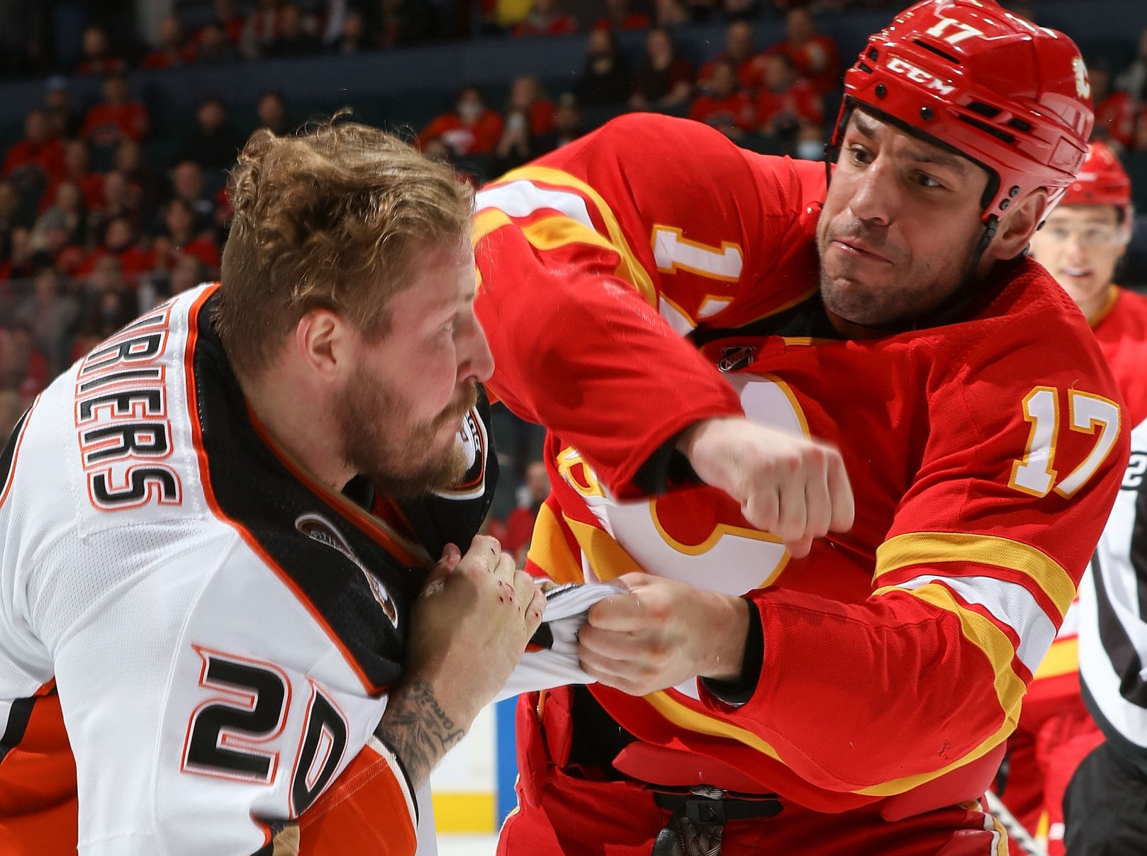 Do me a favor real quick and just look at the knuckles of Nicolas Deslauriers. That is a man who is doing everything in his power to bring back old time hockey. A man who gets suited up every night, finds the biggest and baddest dude on the other team, and drops the gloves like a champion. Kurtis MacDermid, Jamie Oleksiak, Milan Lucic, it doesn't matter. He's almost constantly at size disadvantage, but that's not going to stop him from running through every heavyweight he can get his hands on. So last night when the Ducks made a trip up to Calgary, it was time for Nicolas Deslaurier to do what he does best. Chuck some knucks.