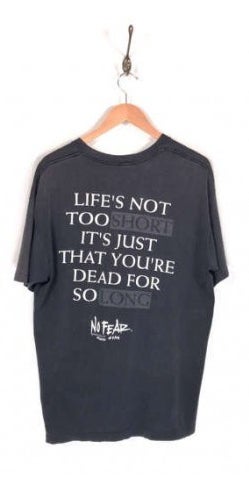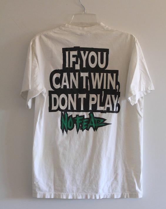 p.s. - remember "No Fear" T-shirts? As corny as you might want to claim they were, they were badass as fuck and you know it. Are kids today soft as baby shit because they're not walking around in shirts with phrases like these on? I argue yes. Get off the tracks when the train is coming through. No Fear.