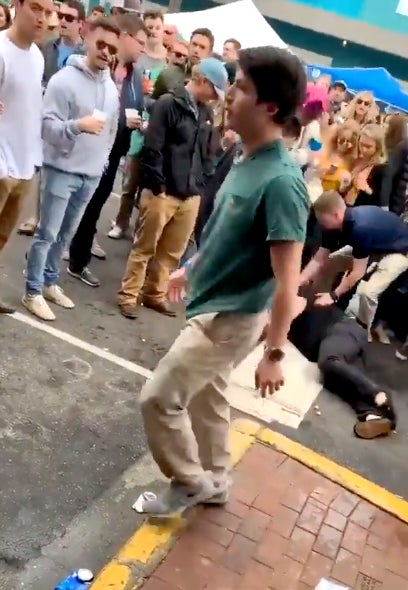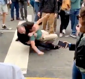 Turns out that was just the appetizer to the main course. That psycho even punched the lady who was trying to help. It happened just off camera at the seventeen second mark.