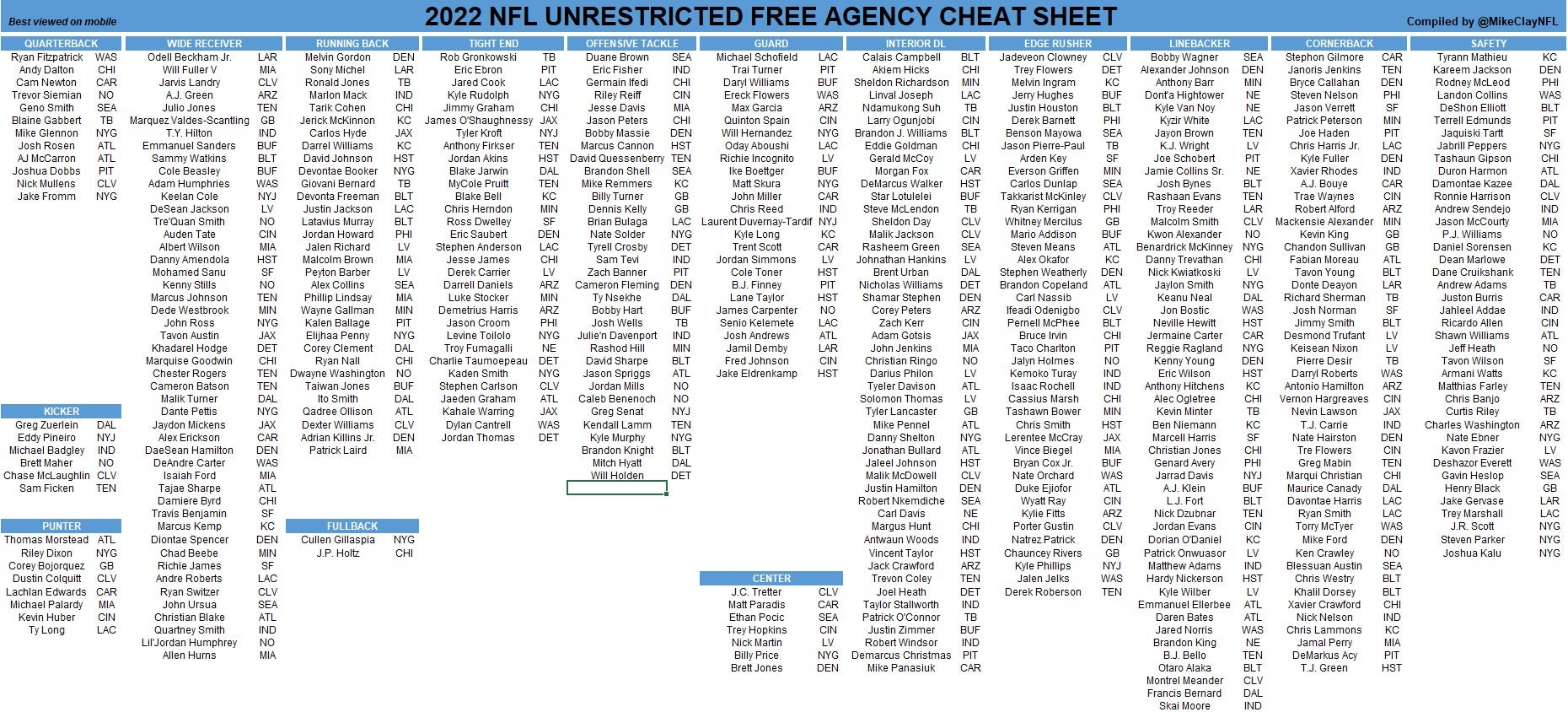To Pioli's point about the second wave of free agency, consider this list of names that are still available: