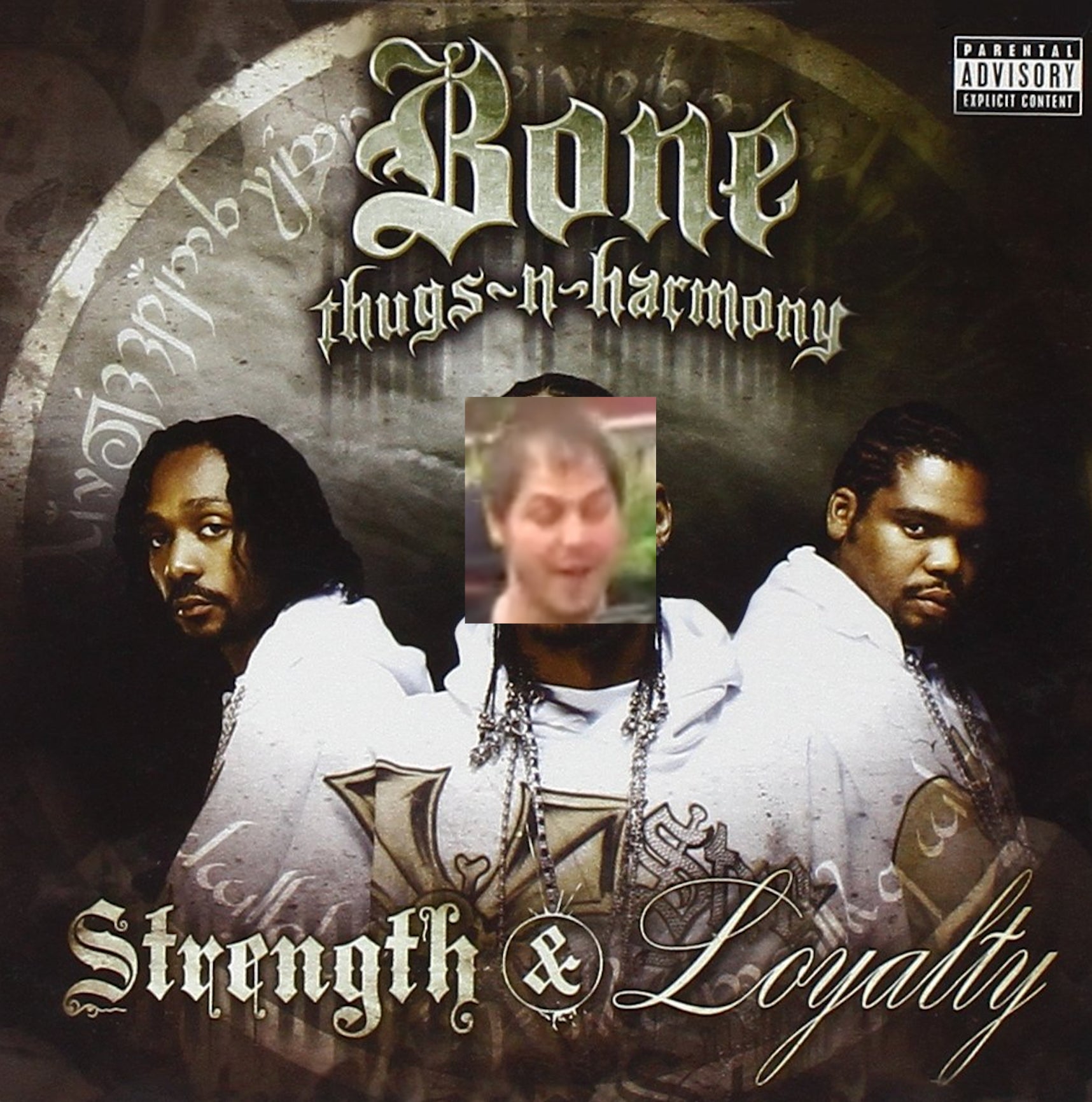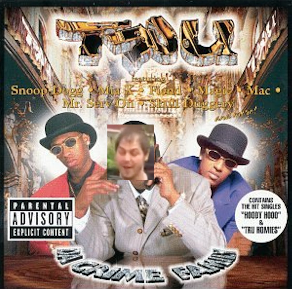 If this group was Wu-Tang, this guy with the red bootleg Jordans, cargo sweats, and horseshoe hair would be RZA.