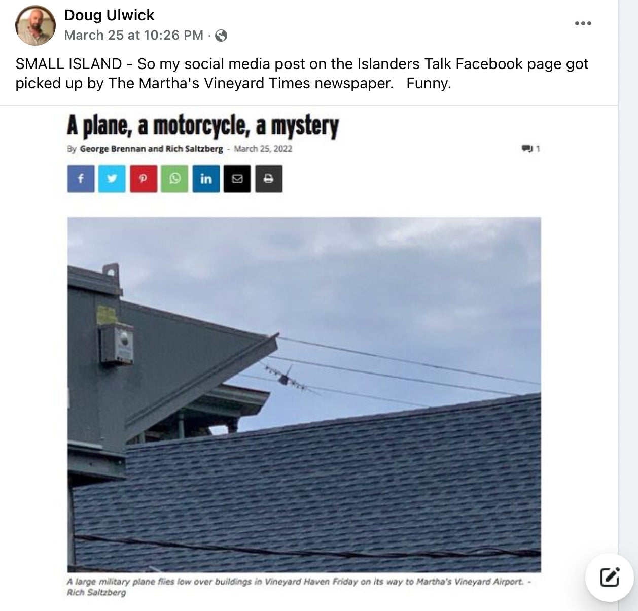 But little did they know allllll the nosy nellies over at Plane View Restaurant were watching like hawks, or that the Moms of Martha's Vineyard FB group was already in a tizzy about military planes coming in to force vaccinate (microchip!) the children, or that a few social media posts would be enough to get their command involved and spur an investigation & dozens of new stories & blow the cover on their covert mission.