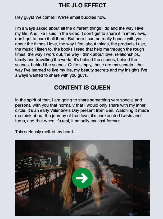 So I have a really exciting and special story to share, um, so if you're not part of my inner circle, um, you have to go onto ontheJLo.com to hear the story. Uh, I don't know if you guys know what that is but it's my inner circle where I share my more personal things, and um, this one's definitely *on the JLo*.