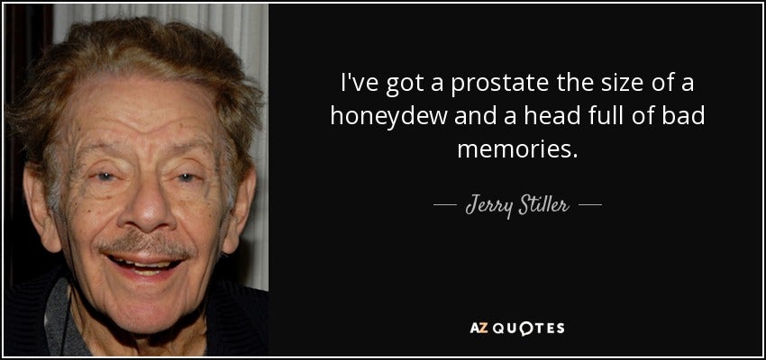 I believe 'benign prostatic hypertrophy' is best described by the late Jerry Stiller.