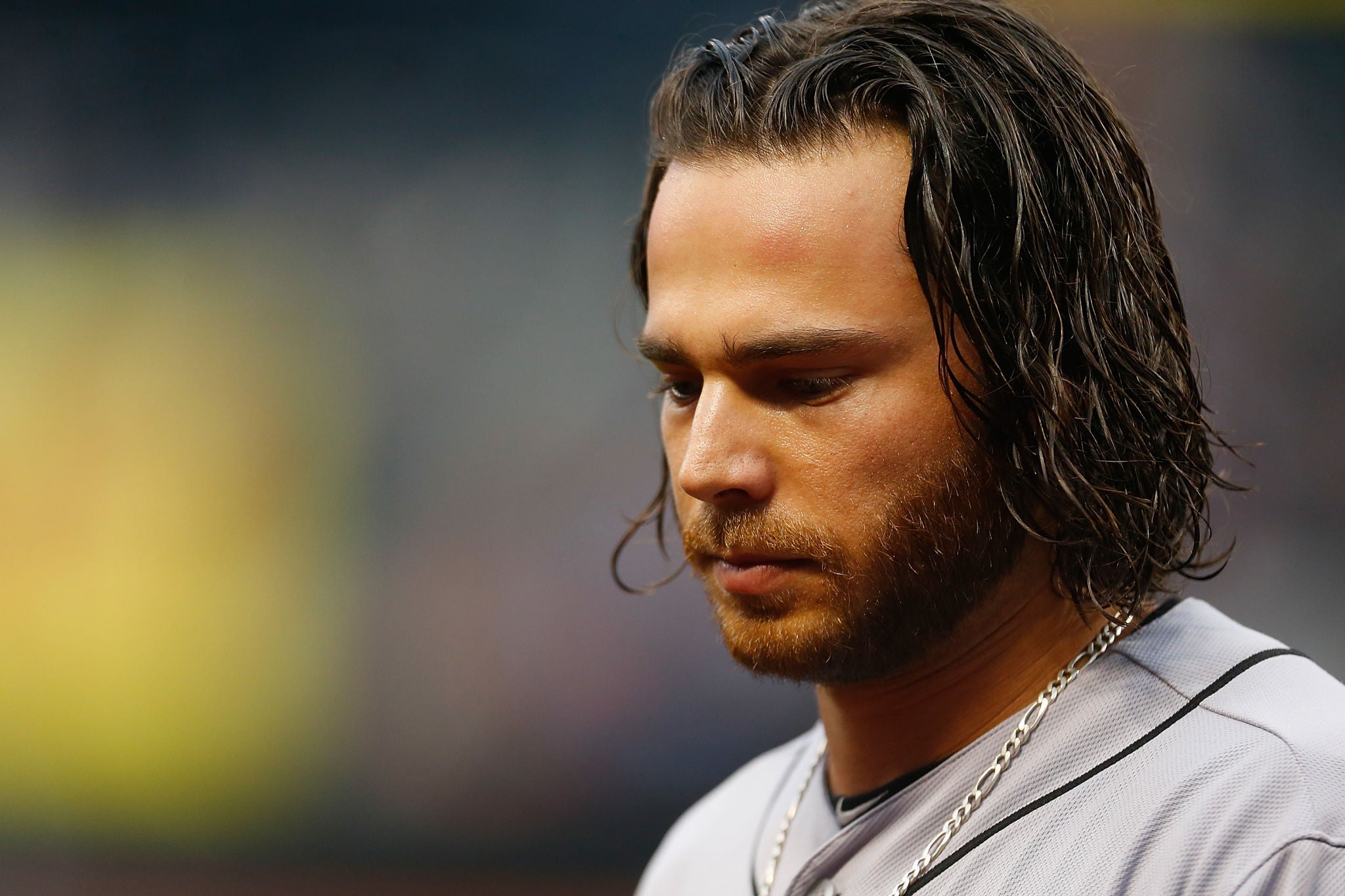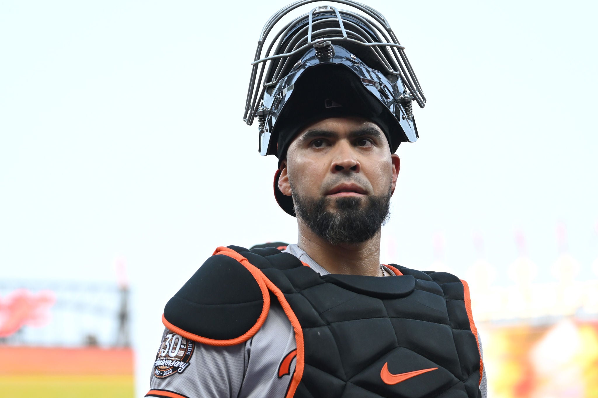 Brandon Crawford has a full beard, so that means he has a mustache. He is participating in Mustache May. See how easy that is? See the hair underneath his nose? See the soup strainer? That's a mustache. Now you don't have to have a mustache if you have a beard. Look at Orioles catcher Robinson Chirinos.