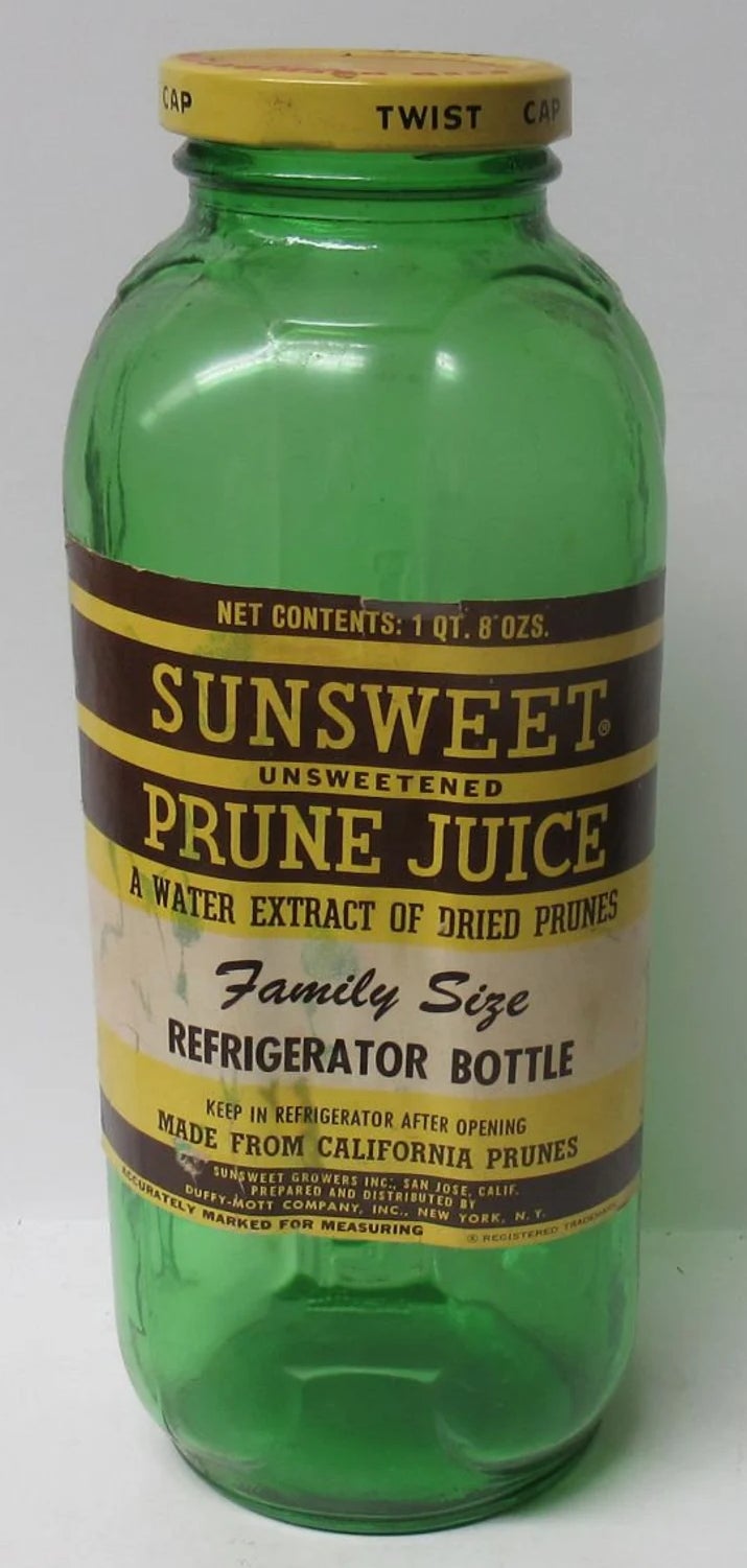 Freddy and Ruthie made homemade chocolate syrup for all the kids in the family. Every time we visited, we left with a tall bottle full. In those days, at least in my family, everyone had a bottle of Sunsweet unsweetened prune juice in their refrigerator, it's how that generation stayed regular, and if you were a kid and having trouble, they'd make you drink a glass, yuk!