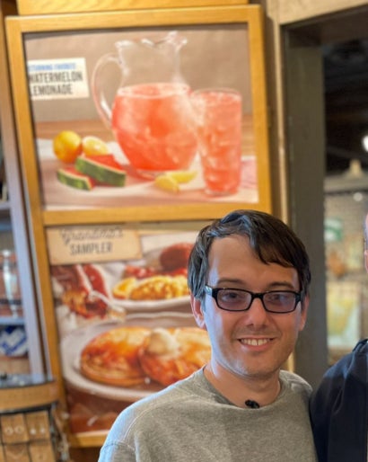 And where did he head right off the bat, still in his gray prison sweatsuit? It took a little close examining & asking Clem, but it was none other than Cracker Barrel: