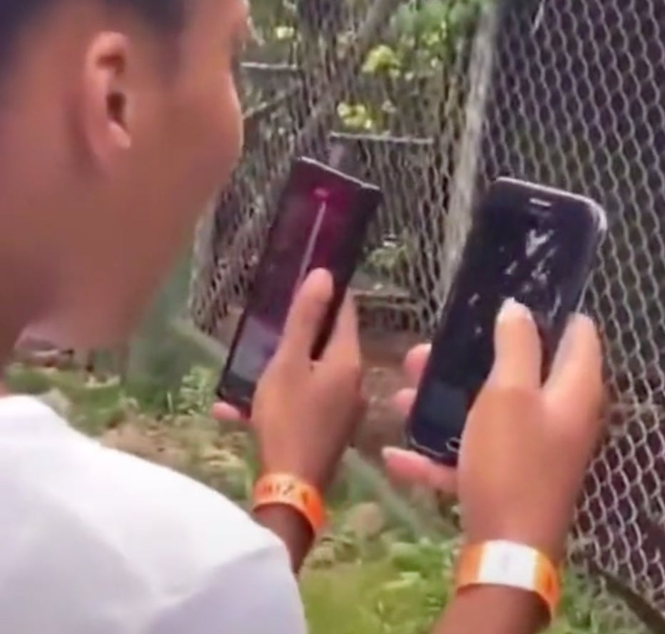 Teeth showing, multiple failed mutilation attempts while growling. And what do the guy's friends do when shit hits the fan? Film it on their phones, obviously…