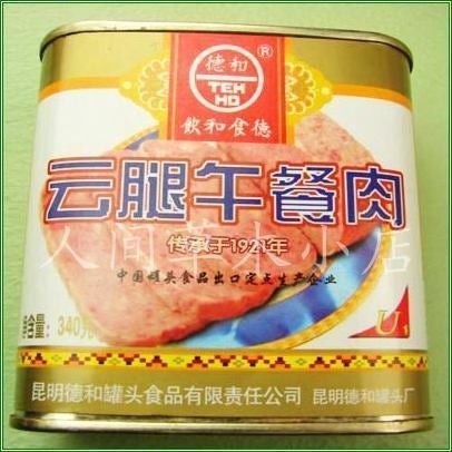 B: Shanghai flavored red sausage and Chinese spam. We get one of these a week. It makes baloney look like filet mignon. But I will tell you, not everyone gets that either. We complained to our our neighborhood committee because we were getting, like, a bag of bok choy for two weeks. That's all the government gave us. And then we saw other people were getting like a whole chicken or some people got a whole duck, so we complained and we said, how come we're not getting the same food other people are getting? And then the next day we got the canned meat.