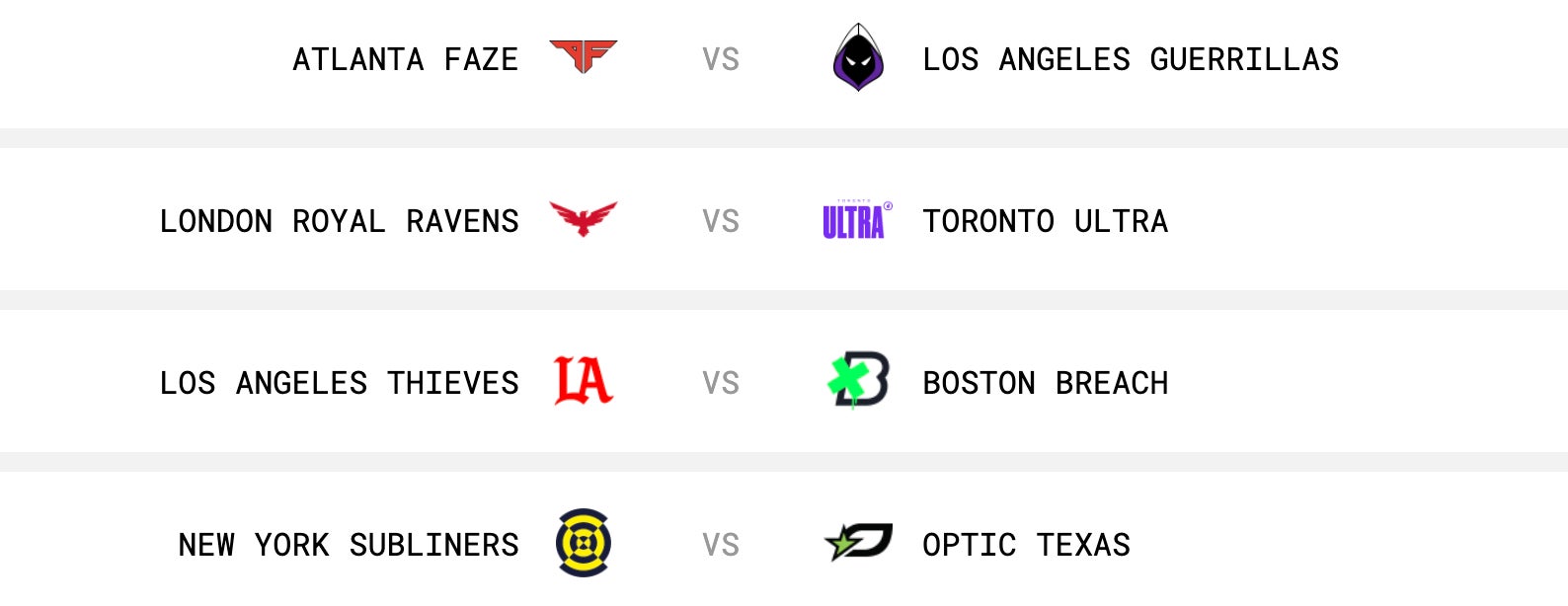 These should be 4 very solid matchups with my favorite team, OpTic Texas, closing the night at 7:30pm EST.