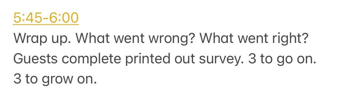 Our BBQ reservation ended at 6 so it was time to wrap up with some post-BBQ discussion. What went right? What went wrong? People could leave some constructive criticism in the "3 to grow on" section, but it would not be a wise decision for their well-being.