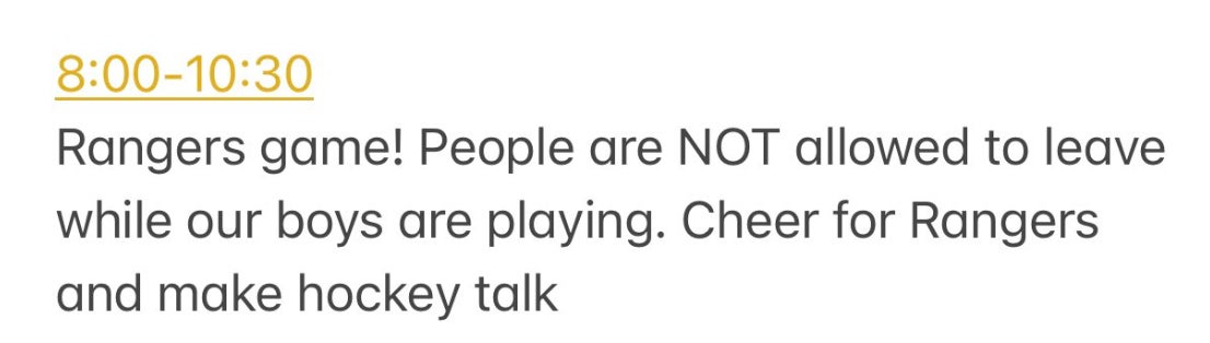 This is a Rangers household, no "ifs" "ands" or "buts" about it. People unfortunately did not have the option to leave yet and were required to stay and cheer for the Blueshirts. "Let's Go Rangers!" chants and "Goooooallll" chants were strongly encouraged.