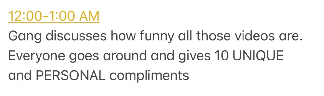 Everyone then had to go around in a circle and give me 10 personal, unique, and genuine compliments about the show. If anyone repeated a compliment that was already said, they would be tased.