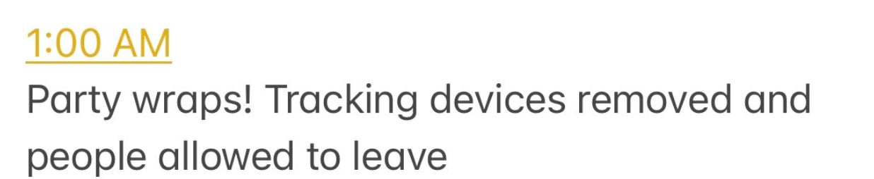 At 1:00 AM, it was finally time for the best BBQ of all time to come to an end. I got those tracking devices removed in a jiffy and everyone was free to Uber home after having the best day of their lives!