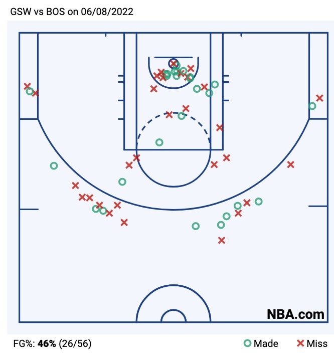 Look at the rim. It's very clear that Steph cannot handle Marcus when he uses his size to get into the paint, he's too small. Jaylen and Tatum no longer have to deal with active hands always reaching in on drives like they did against MIL/MIA, so their path to the rim is so much easier. Beating the Warriors isn't always about matching their three point shooting. If you take high quality looks and finish at just a normal rate, you can beat them.