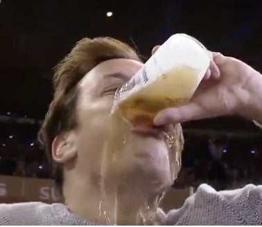 PS: If you get upset about the fact that half the beer spilled down his face you're the biggest loser on the planet.