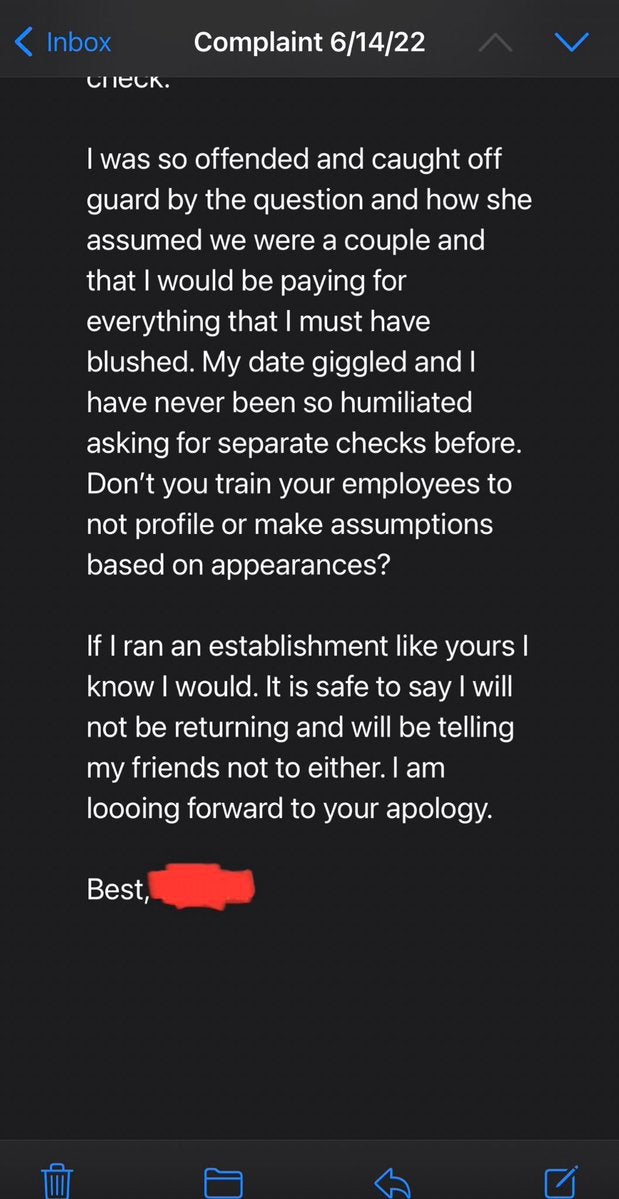 One of the 20 random jobs I have is overseeing the marketing for the bars and restaurants I part own. That includes checking the "info" email accounts and keeping tabs on online reviews. Every day is an adventure, and you really get a chance to see just how petty, cheap, and delusional some of our fellow human beings actually are. And how much time some of them have on their hands. But yesterday was really special.