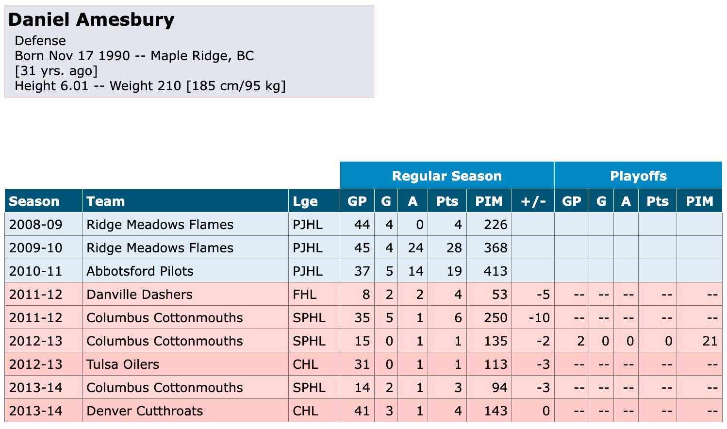 And that brings us to Ice Wars. No sticks, no puck, just the boys dropping the gloves and chucking some knucks. The way it ought to be. And unleashing some of the heaviest bombs of the first event was Daniel "Diamond Hands" Amesbury. Take a quick look at his HockeyDB page and you'll see the type of weapon we're dealing with here.