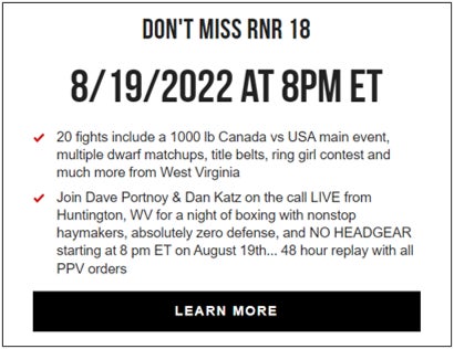 Here is some other promotion. Rough n' Rowdy is always awesome. Dave & Big Cat are on the call, there's multiple drawf fights,. you don't want to miss out. etc. etc.