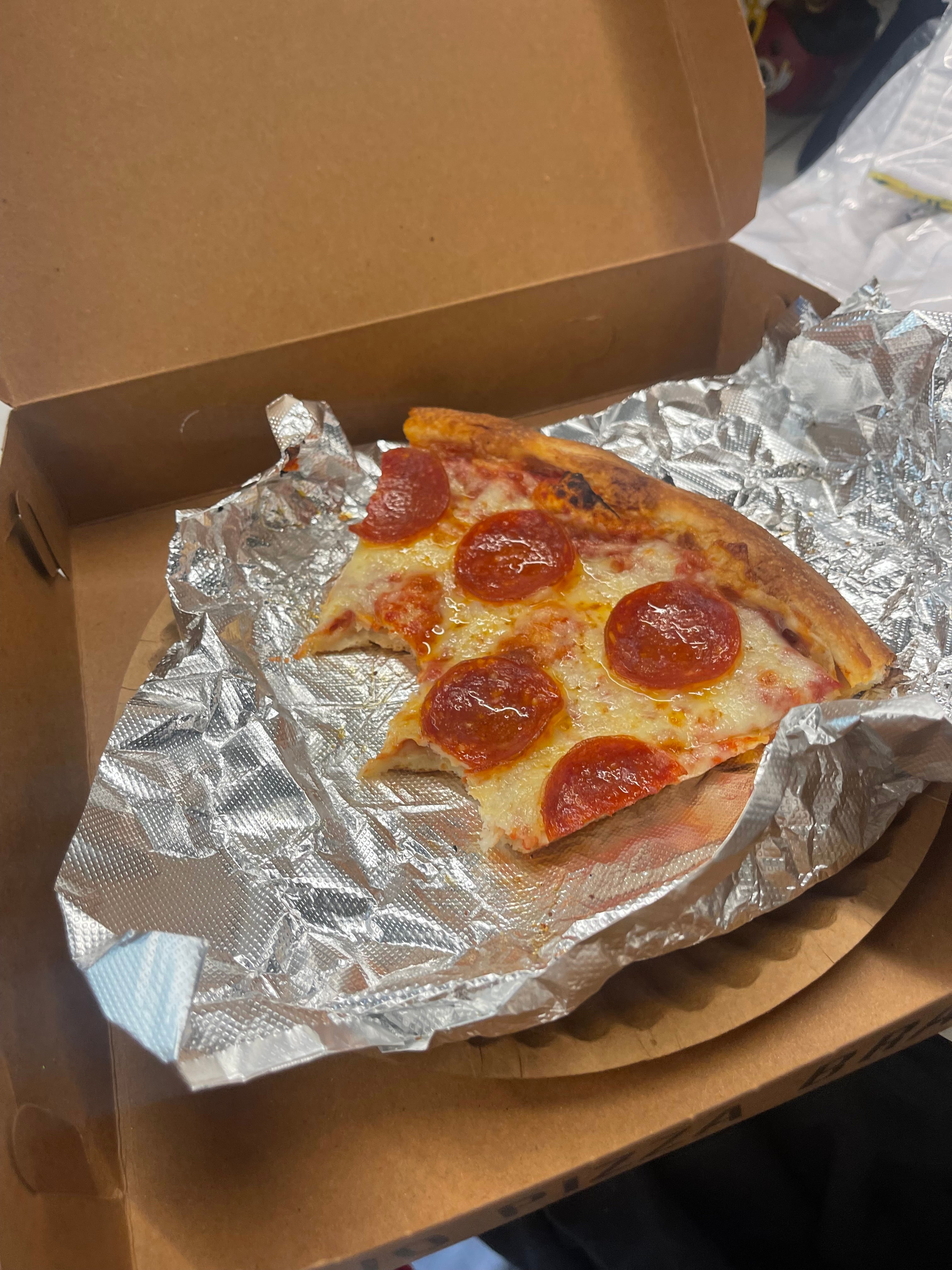 1:20pm - I made it back to the office with my pizza. It was ok to slightly above average. I give it a 6.8.
