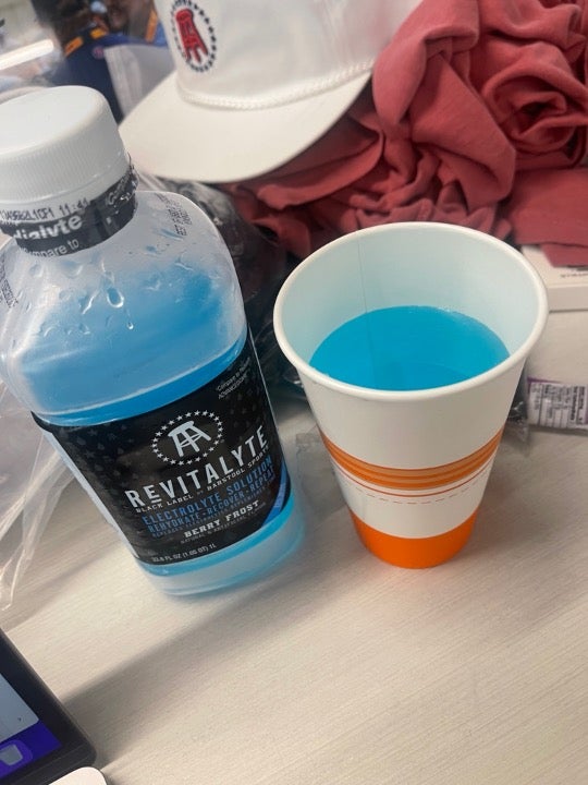 Nothing to see here. Just a man drinking Revitalyte out of a cup. Typical Thursday afternoon behavior.