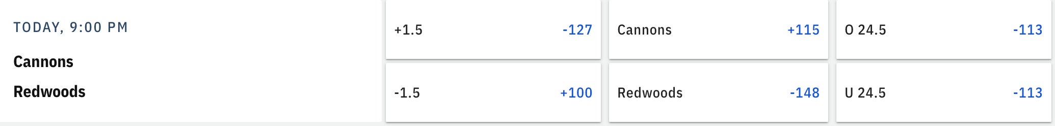 Cannons (1-6) vs Redwoods (2-5) // Friday, 9pm ET // ESPN, ESPN+