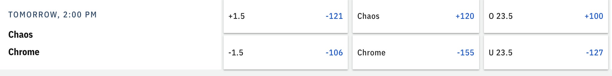Chaos (2-5) vs Chrome (4-3) // Saturday, 11:30am ET // ESPN+