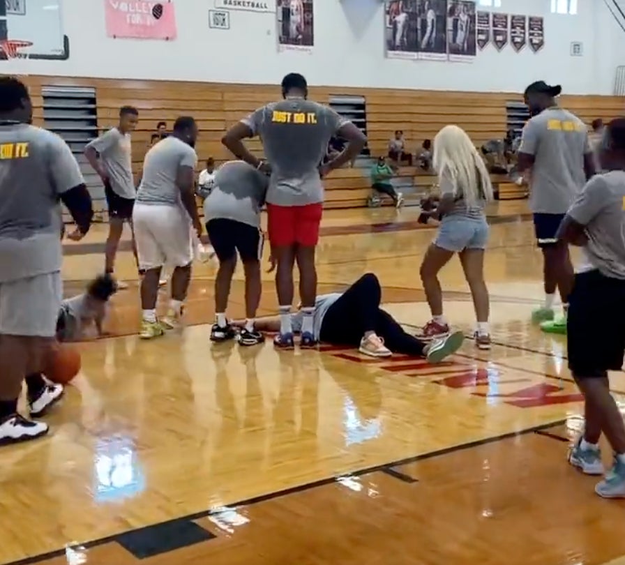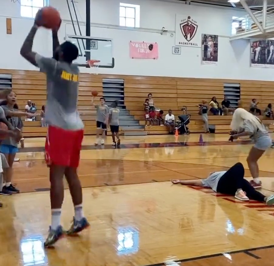 Great message here for the campers. You finish your play. Nothing else matters until you put the ball in the hoop. Even if it's your mother, you do nothing until you get those buckets. That's the type of mental toughness you need to make it in the league. You need to stay focused even though insane adversity. I will admit, that girl taking a photo over the corpse of Mama O'Neale is pretty brutal. I mean she really got in there.