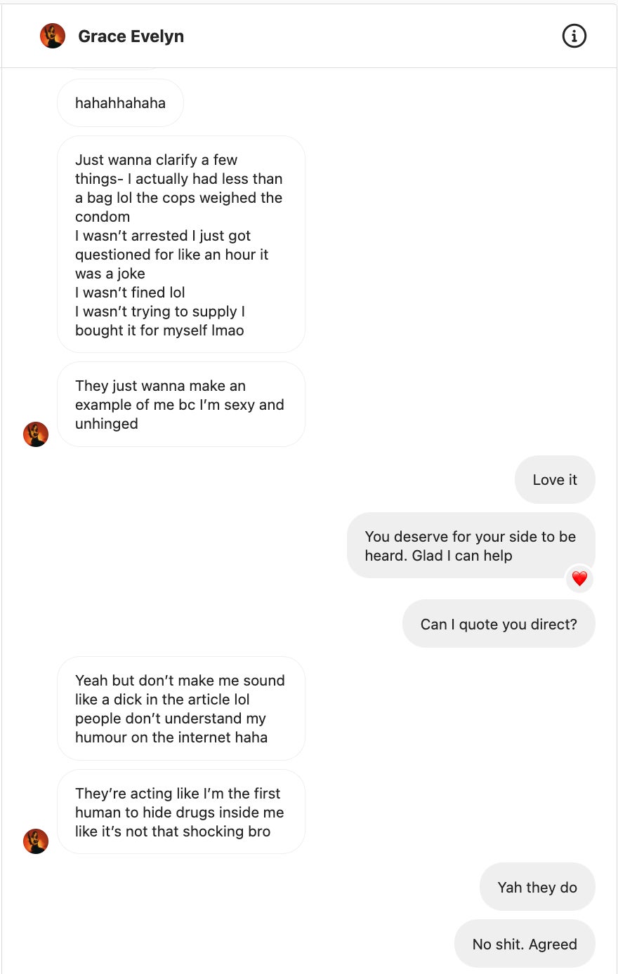 Speaking to Daily Mail, the burgeoning influencer insisted she was a “nice girl” and “never intended to supply” the drug. She said she had planned to share her stash among her girlfriends and had only taken a single ‘bump’ of cocaine prior to the bust.