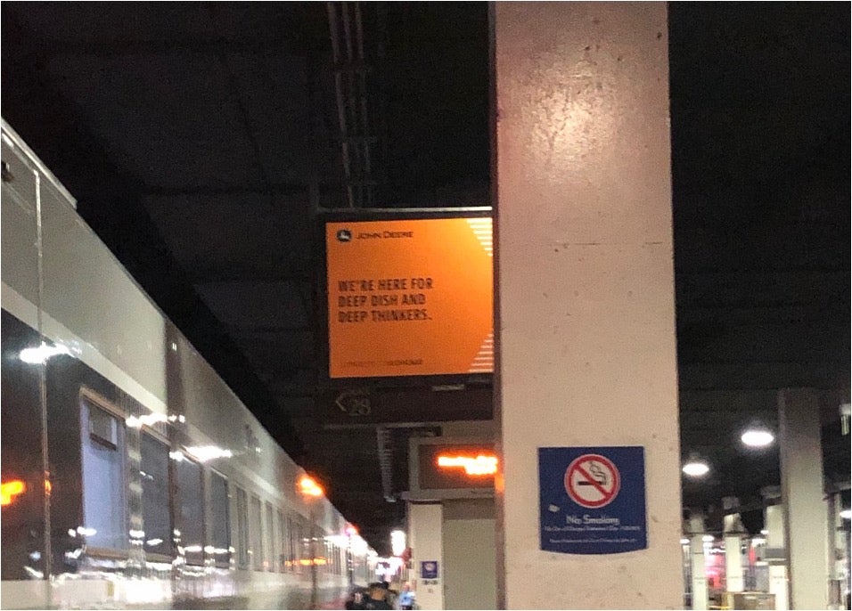 Seems like a strange ad campaign from John Deere. What do deep dish, deep thinkers, and John Deere have to do with each other? Are John Deere people notoriously deep thinkers? What does pizza have to do with farming equipment? I looked online to see if I could find more from this ad campaign, but the only thing I came across was this tweet.