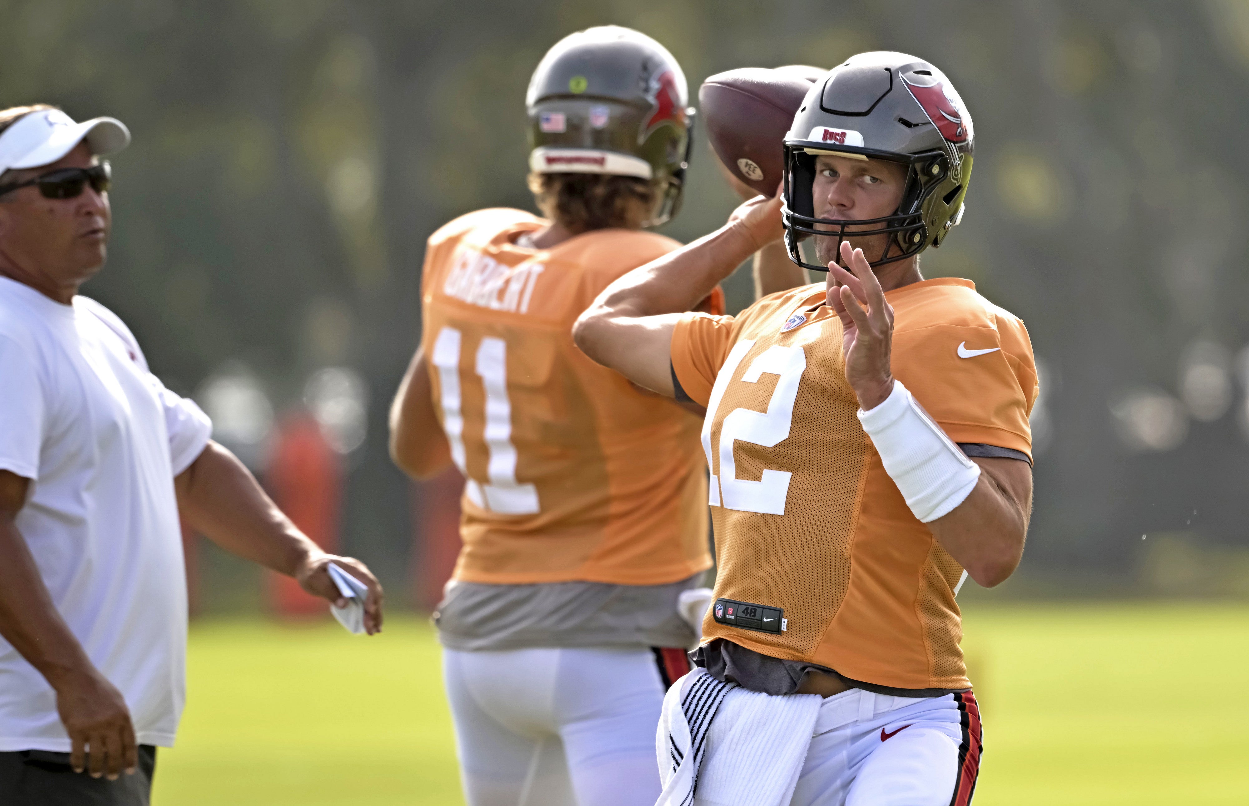 So like Steven Cheah mentioned, Tom Brady is back in Bucaneers camp today. He may or may not still pop up on The Masked Singer. It would appear that all the reports saying his surprise sabbatical had nothing to do with some family medical emergency were accurate, thank God. But as far as Cheah, Bucs fans, and apparently everyone in the Bucs organization are concerned, where he's been and what compelled him to take an unprecedented leave of absence doesn't matter at all. It's no one's concern. Just ignore the 225 pound GOAT who wasn't in the room for a couple of weeks, and get on with it. I guess.