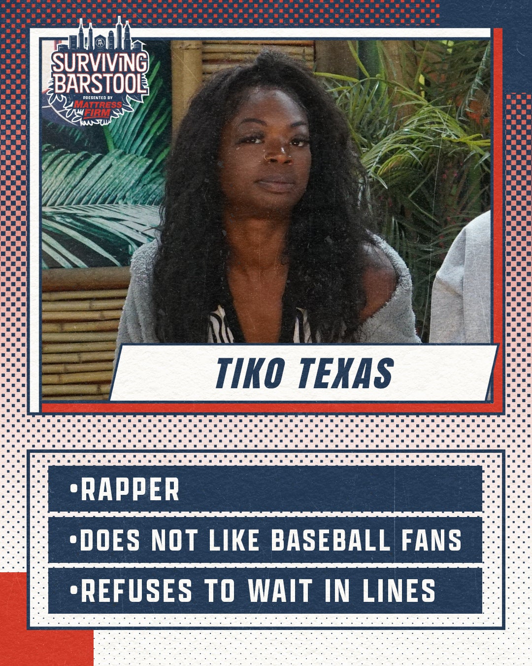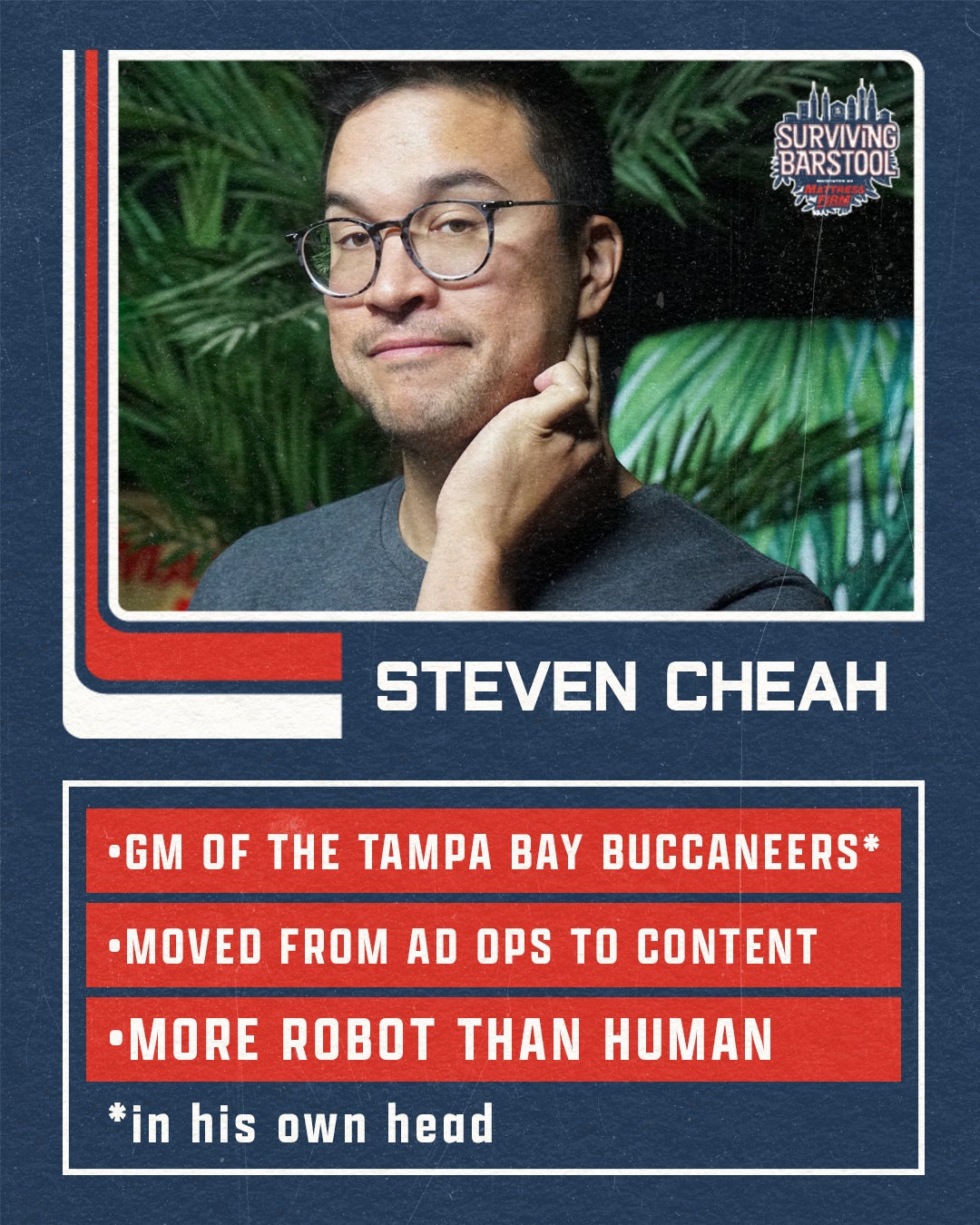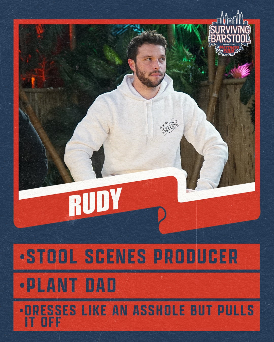 This years cast had a very tough task. Very big shoes to fill. I am not gonna lie, I wasn't sure if this cast was capable of replicating the same fireworks from last year. It's only natural for a lot of people to see some new faces that haven't been in any content and be skeptical. It's only natural to want the familiar crew who you already know and understand their stories and their connections to each other. But this cast was a concoction of personalities that turned out to be straight up COMBUSTION. We had new versus old, producers vs content, young vs old, New York vs Chicago, and Robots (Steven Cheah) vs Humans (the rest of the cast). I couldn't believe it. Full transparency I wasn't sure if they could match S1, but they did that and then some. Because everyone knew the stakes heading into this season, and everyone had season 1 as a blueprint, these motherfuckers were playing the game 24 hours a day. There was no work on the side. There was no breaks. There was no "on camera" and "off camera." Everything was on the record. Everything was constant mayhem. Theres theatrics and stupidity galore. Players with strategies that mixed about as well as oil and water. New, enhanced challenges with extra dramatic eliminations...and the one liners and legendary content to come out of this week is gonna go down in Barstool lore. Let's meet the players: