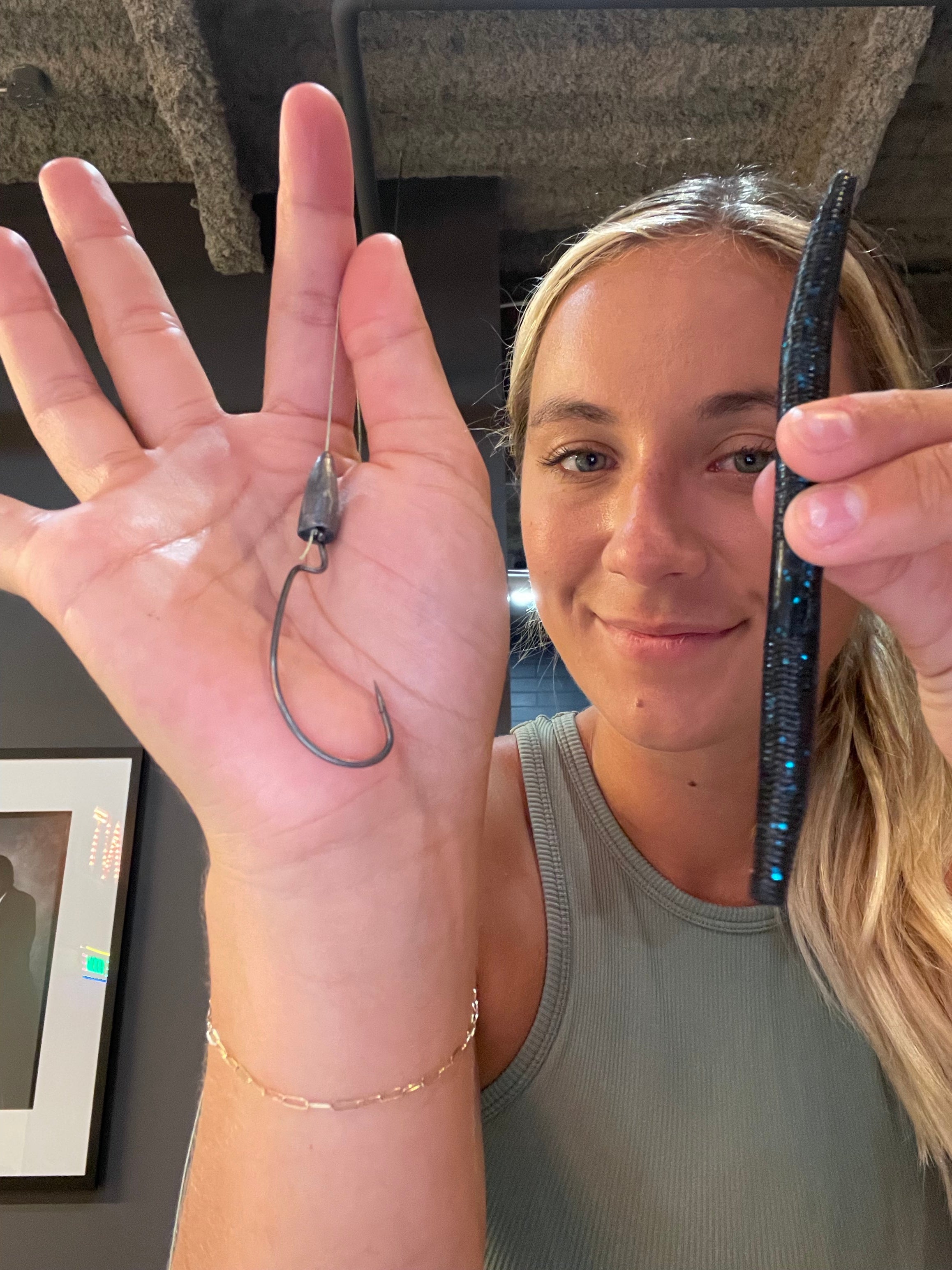 All you need is a bullet weight, offset worm hook, soft plastic and your rod and reel.