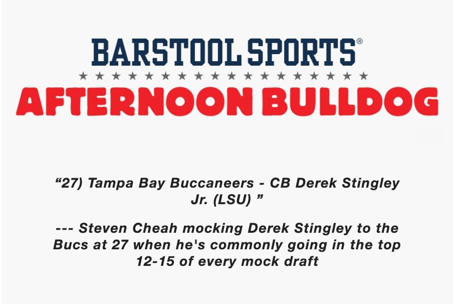 Cheah probably wanted Stingley to fall to his team, the Bucs. Either way, I'm dying. I'm just dying, y'all. Apparently opinions on athletes can evolve and change, though. Imagine that.