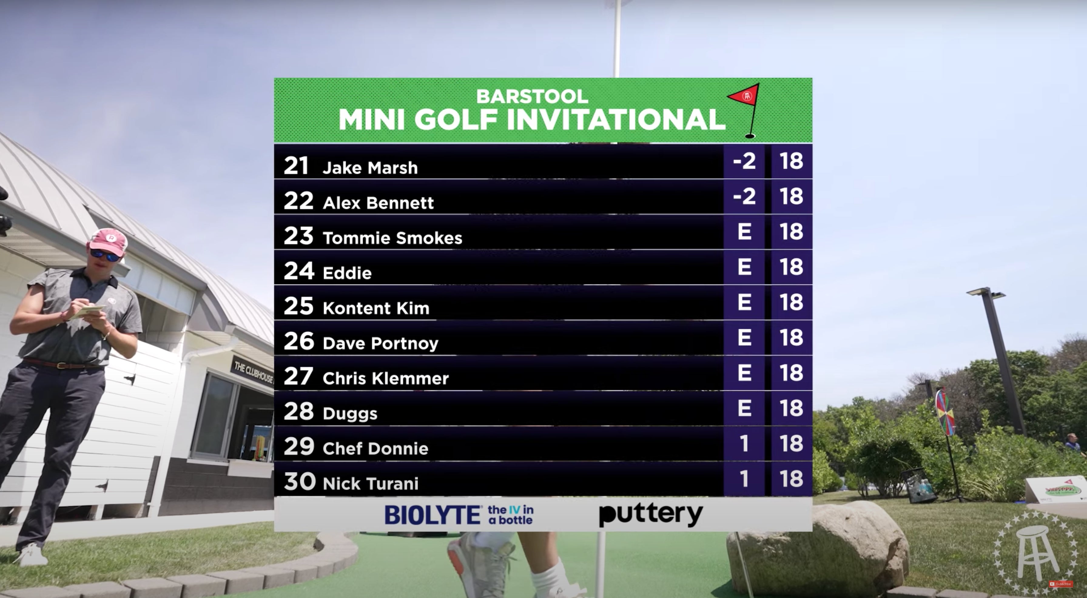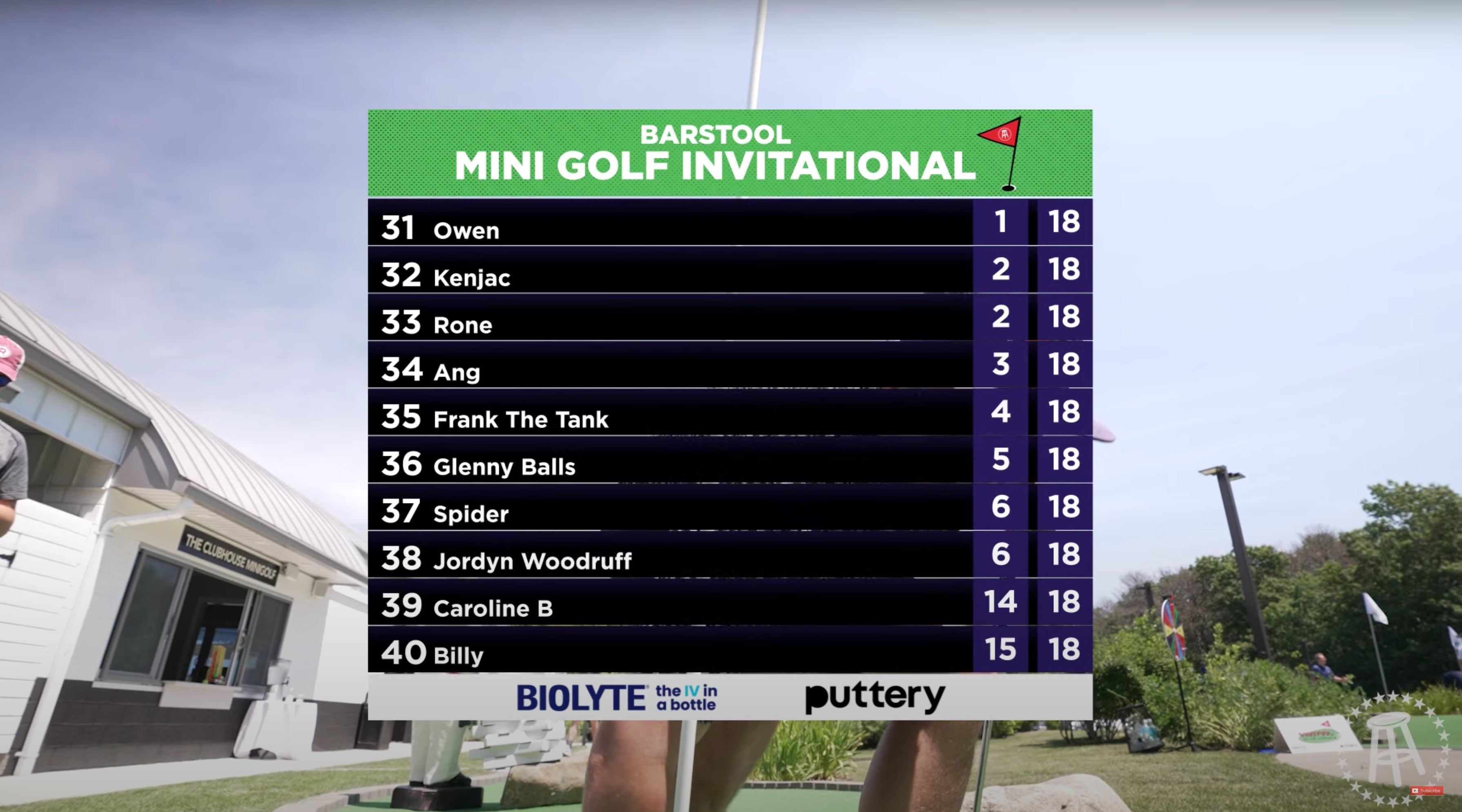 Round 1 of the inaugural Barstool Mini Golf Invitational is in the books, and the 40 player field has been nearly cut in half. But only one man stands on top after 18 holes of play, and it is a very familiar face in the Barstool universe: