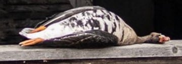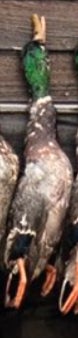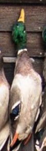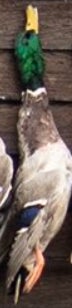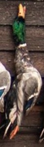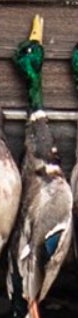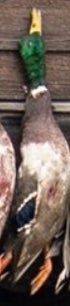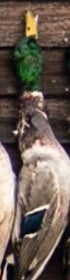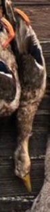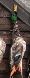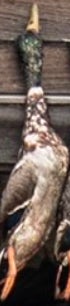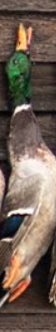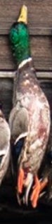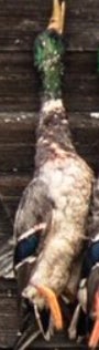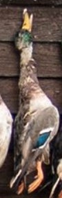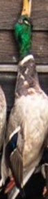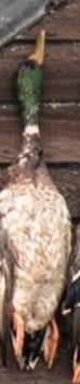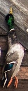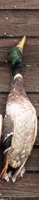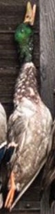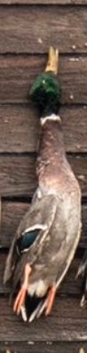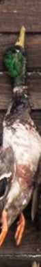 If you looked up a picture in the dictionary of a perfect wouded duck you would find either a Donovan McNabb trading card or this majestic mallard right here. Beautiful plumage, excellent coloration, shot right through the neck like Will Ferrell in Old School. Fun orange feet as well. Great shootin Carson!